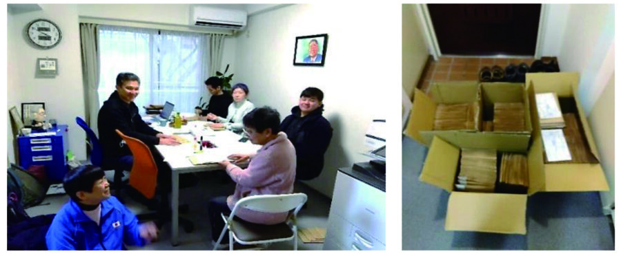 『清風掃々』5千冊のうち、大口は印刷会社から直送し、賛助会員や個人など小口の千冊未満は事務所から発送します。このお手伝いに、過去京都、大阪、三重、愛知など、遠方からのご参加もありました。