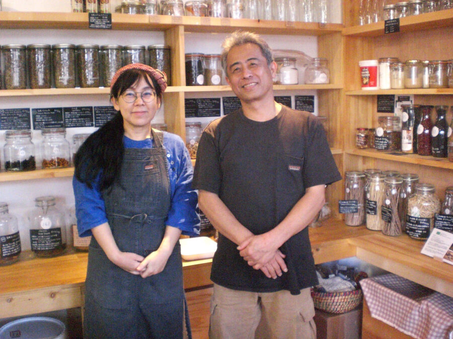 梶原栄二さんと美樹さん夫妻経営、持参の容器に「必要な分だけ」「食べるだけ」買って「ゴミを出さない」環境にやさしい生活スタイルをしたいお客様相手のお店です。ご夫妻に聞きました (取材 編集室)