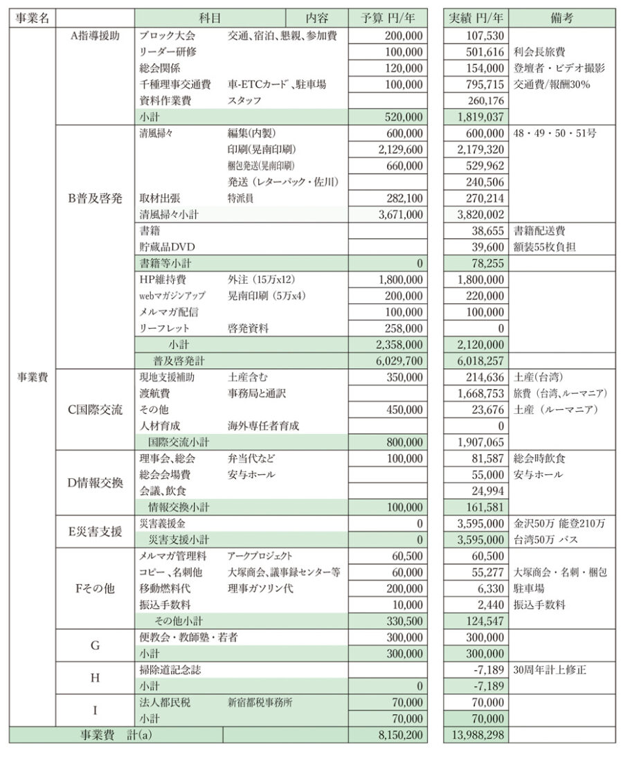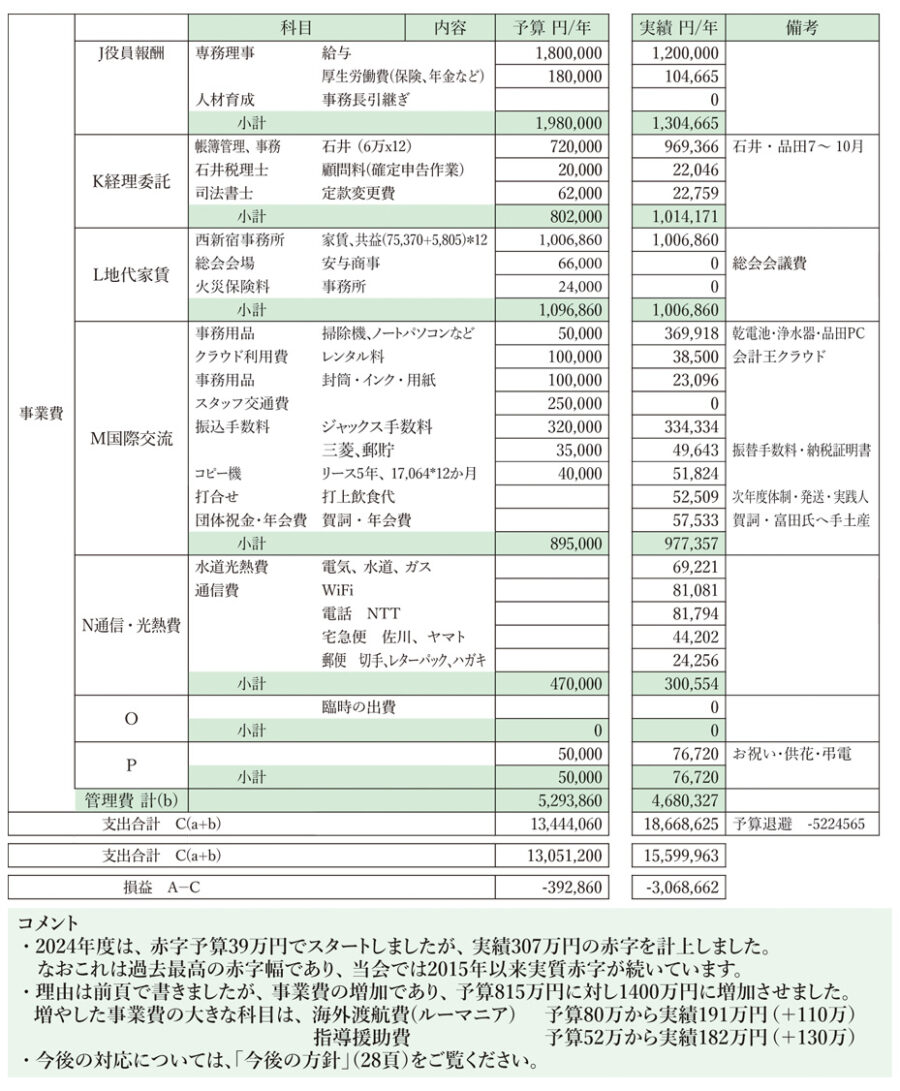 日本を美しくする会 支出明細表 2024年度(令和6)予算と実績