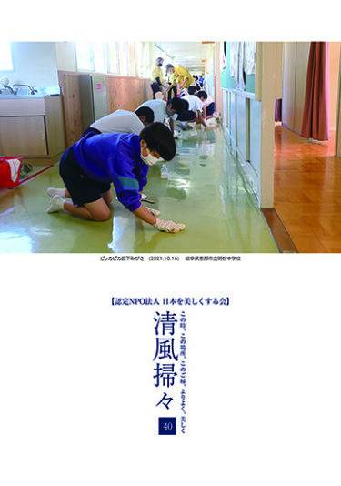 2022年3月11日 掃除の工夫コーナー ピッカピカ「廊下みがき」 大正村掃除に学ぶ会 田中 義人 ■とき 令和3年10月16日(土)9時~12時■ところ 岐阜県 明智中学校■参加 計144名 生徒 全校 120名 リーダー 先生6、一般18名 いきさつ ・固形石けん・雑巾2枚・バケツ・ナ […] 続きを読む